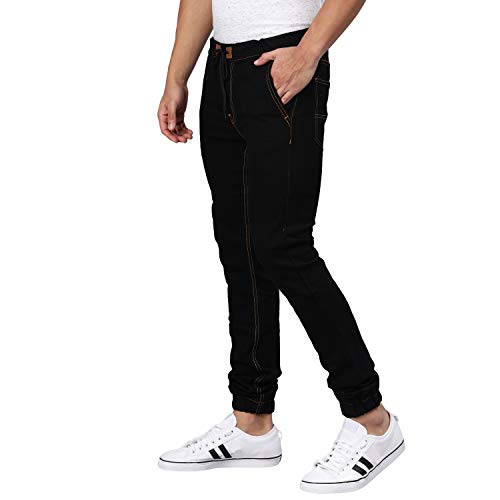 Bring out your stylish best this season in this must-have, classy and trendy men’s stretchable black jogger jeans from the latest collection of Urbano Fashion. High on style with a cool jogger casual look, made with superior quality cotton fabric with stretch technology & premium solid pattern, the slim fit mid-rise jogger jeans with elasticised waistband is sure to keep you looking stylish and feeling comfortable through the day. Pair these trend-setting jogger jeans with any Urbano Fashion shirt or t-shirt for the perfect casual, evening or party wear look! #GoStylishOrGoHome!