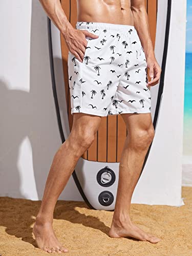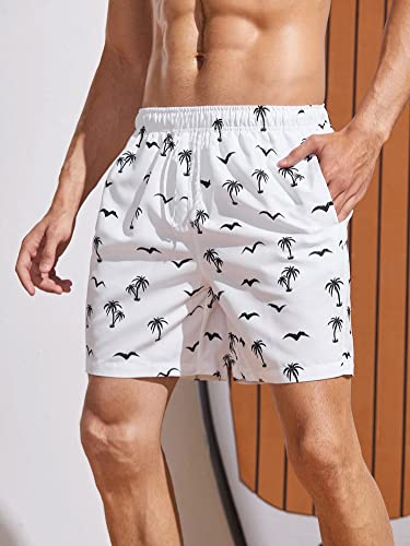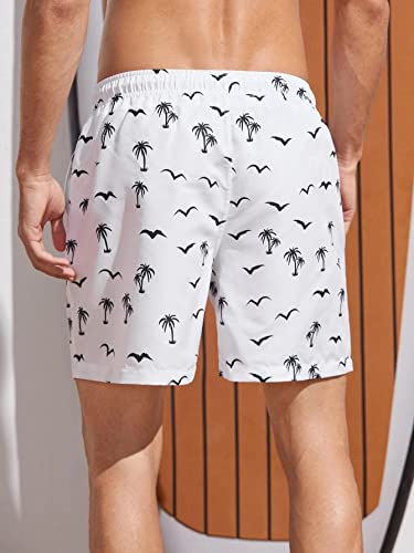 Men shorts || Coconut Tree & Bird Print Drawstring Waist Swim Trunks || Men shorts
