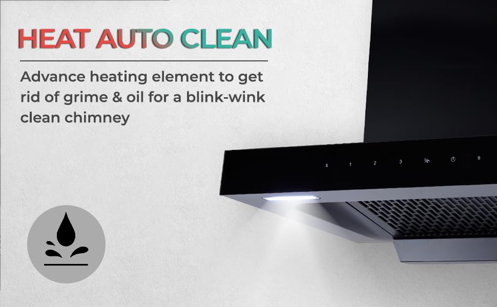 Autoclean: It makes the use of a heating element to get rid of the sticky oil particles inside the chimney and collect it in the oil collector placed right below.