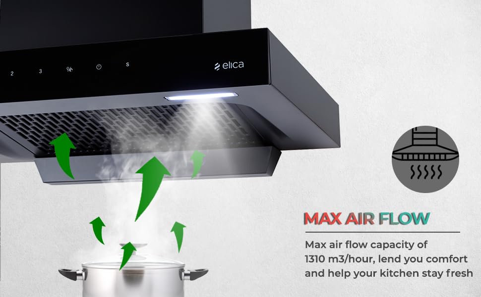 With a true suction capacity of 1310 m3/hr, its huge suction effectively covers all the area, offering a clean and healthy cooking environment.