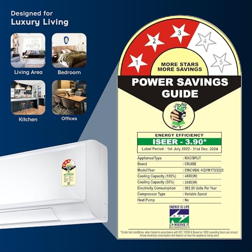 ENERGY RATING: 3 Stars – Energy efficiency | Annual Energy Consumption: 952.88 Units per year | ISEER Value: 3.90 ( Please Refer Energy Label on Product Page). The star rating is as per new BEE guidelines effective from 1st July 2022.