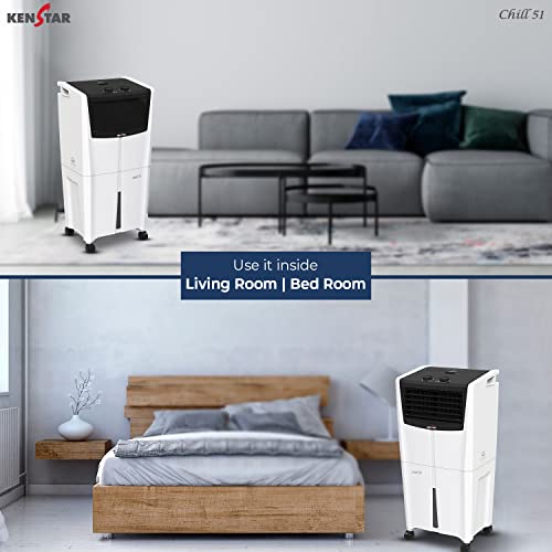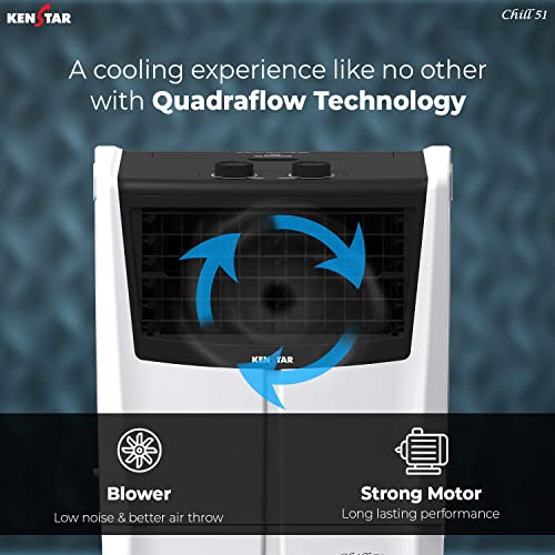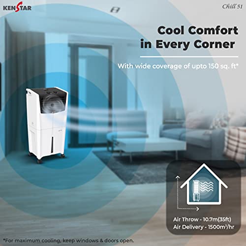“GENEROUS COOLING: CHILL 51 is suitable for use in large spaces and outdoor areas. The Kenstar air cooler can effectively cool larger areas and provide comfortable temperatures in an open-air environment. “