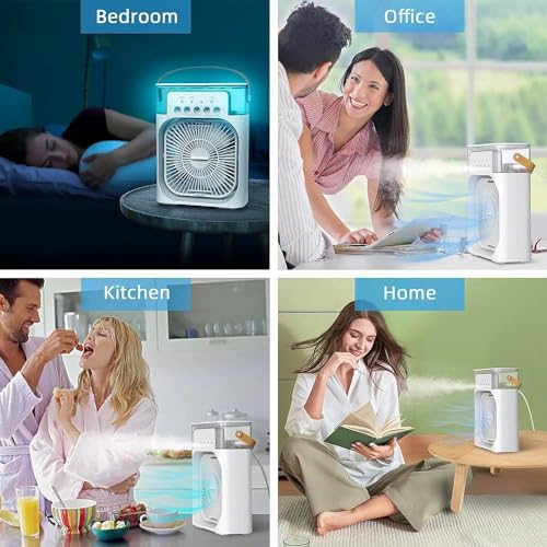 ❄[7 Color Lights & Low Noise] – The misting fan has 7 soft colors and 1 fade choices in all. Place in dining or coffee table to create a romantic atmosphere! Desktop air cooler fan can work powerfully at a low noise level, let you enjoy a comfortable sleep all night with suitable temperature.
