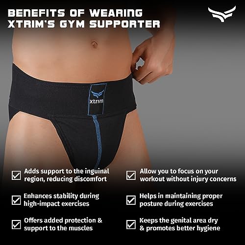 XTRIM Gym Supporter for Men, Sports Underwear for Men for Workout in Gym, Stretchable Cotton, Men’s Cotton Briefs, Quick Dry, Moisture Wicking Supporter for Cricket, Gym, Running