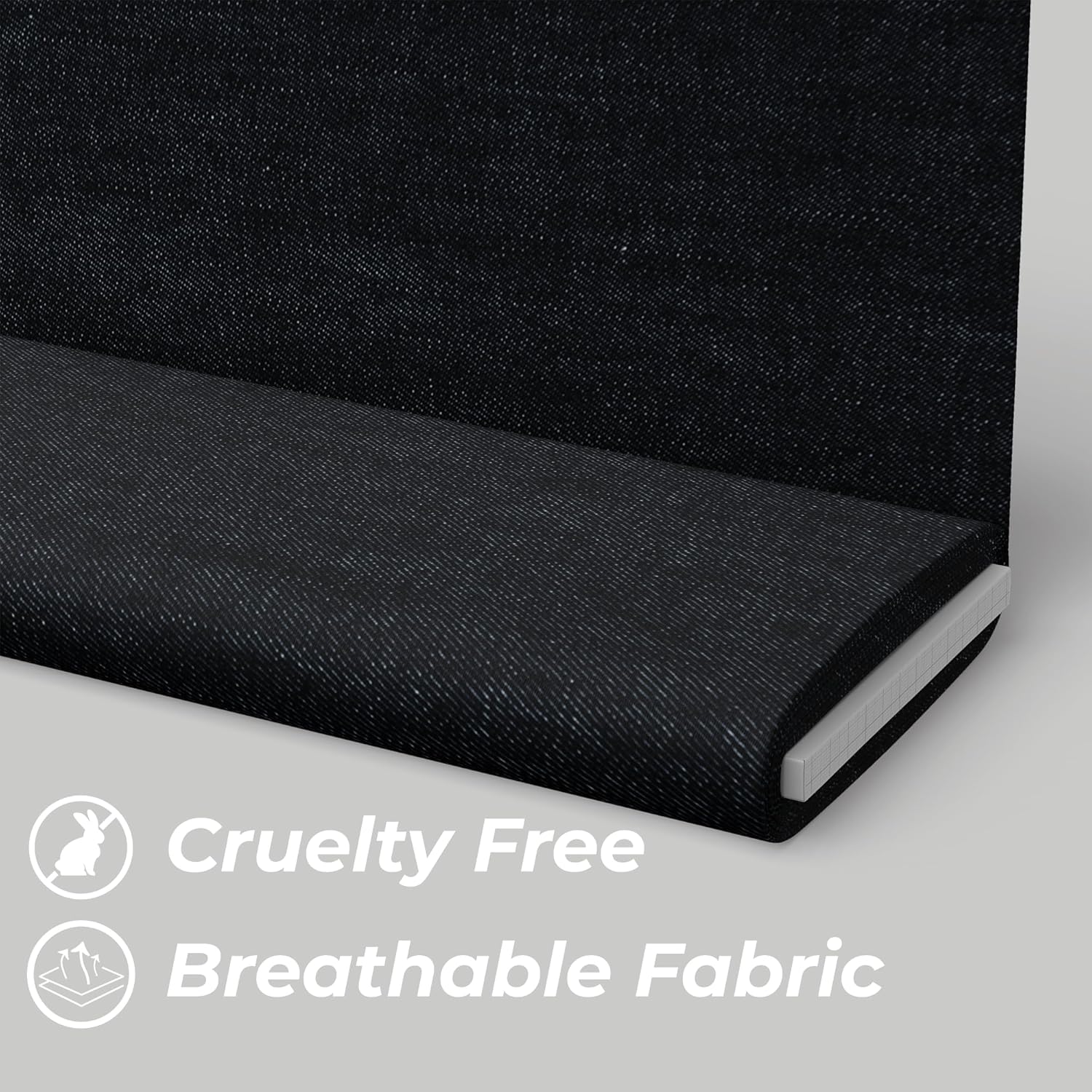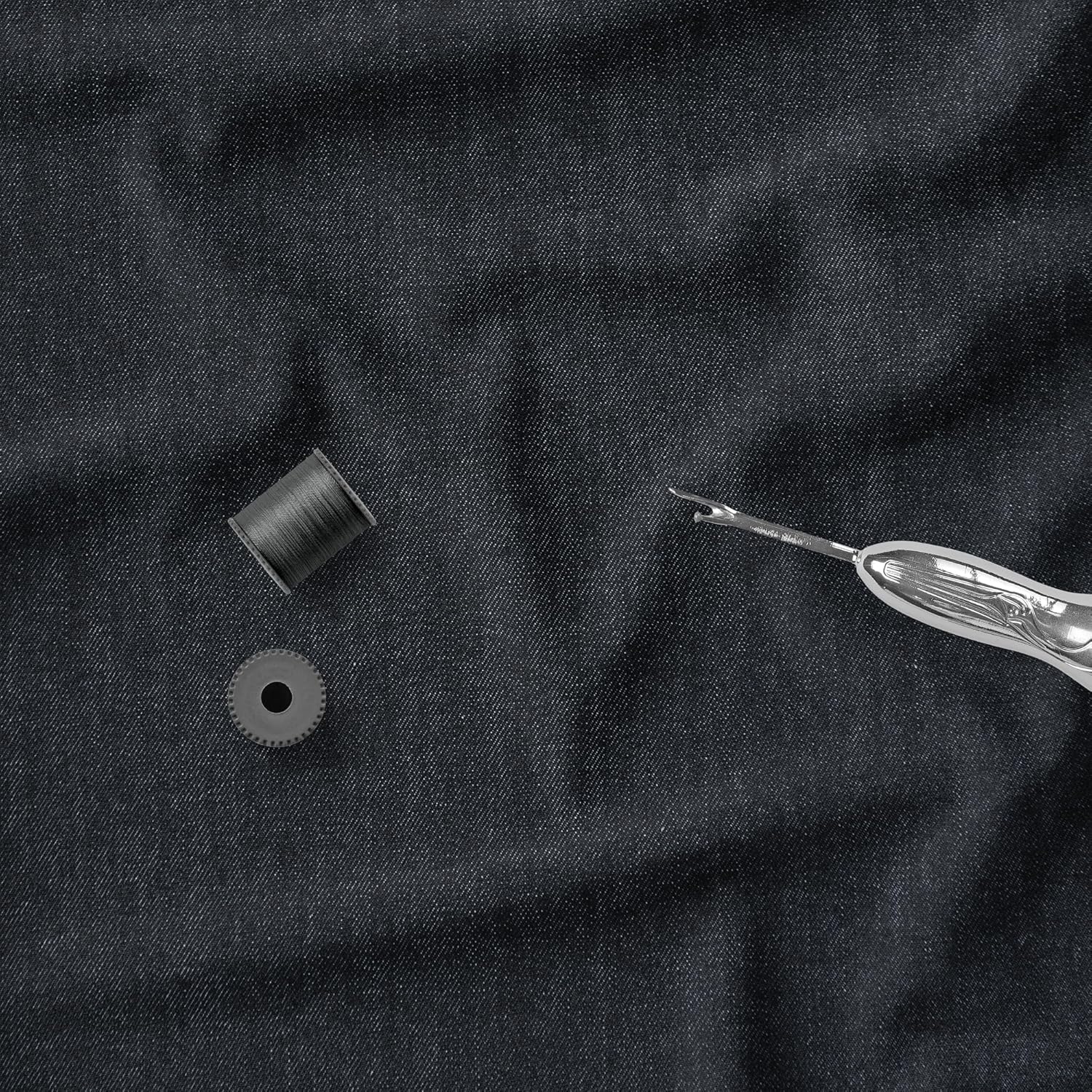 Premium quality unstitched black denim fabric tailored for crafting bespoke trousers, jackets, and other clothing items, offering ease of use and versatility in design.
