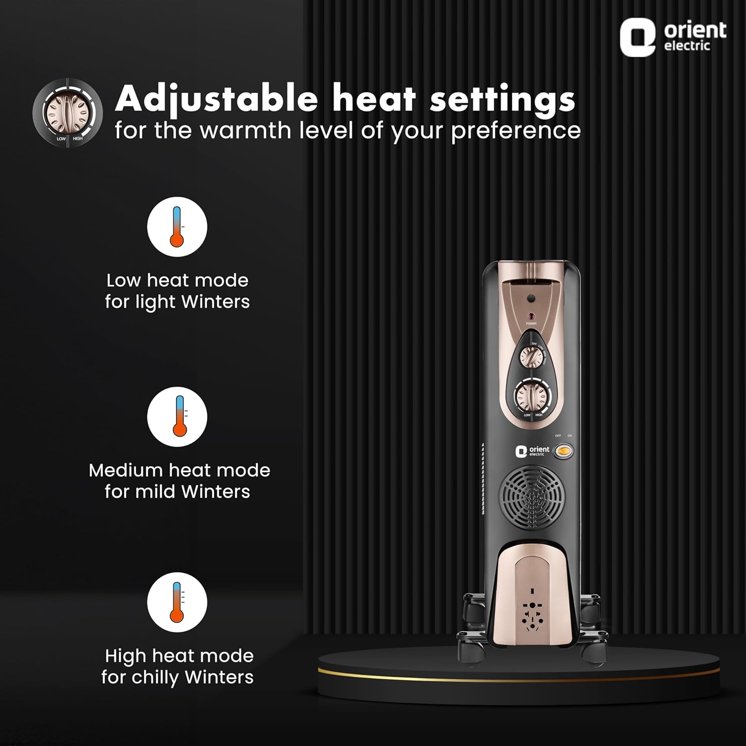 Quick & uniform warmth with S-shaped fins: Orient’s oil heater comes with S-shaped fins that have larger surface area to facilitate 11% more warmth as compared to conventional heaters.
