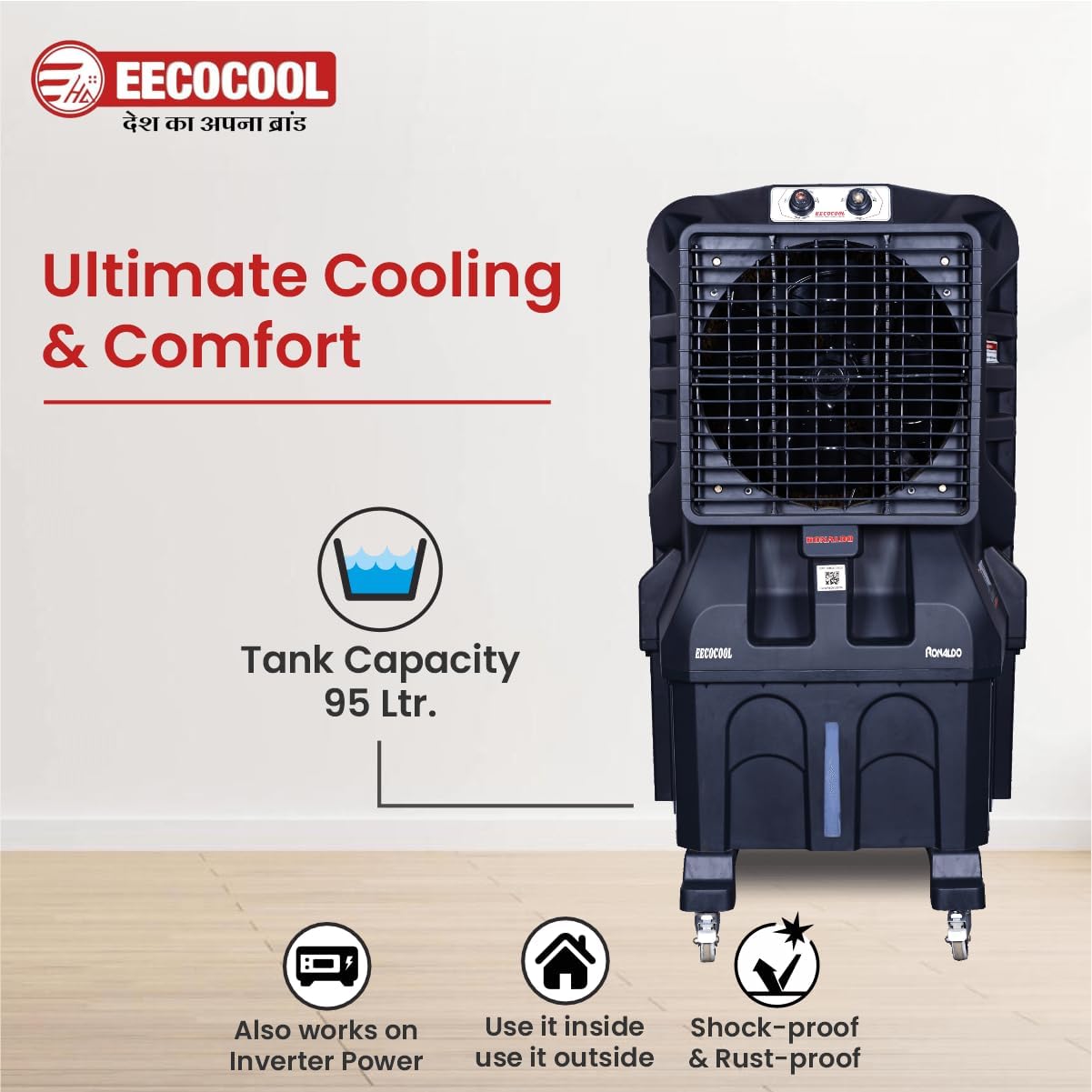 ✅{INVERTER CAPABILITY} :: The Eecocool Ronaldo Desert Air Cooler is adaptable to your power source. It is compatible with inverters, providing you with flexibility and uninterrupted cooling even during power outages.