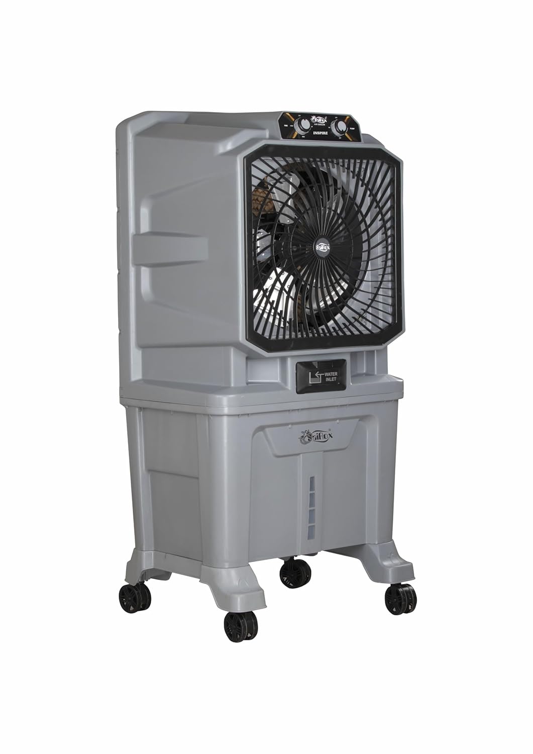 Inspire Commercial Air Cooler by Sairox — the ultimate solution for powerful, efficient cooling. Crafted with an unbreakable, flexible body made from high-quality PPCP ABS material, this air cooler is designed to withstand the demands of any commercial space. The Inspire cooler features a robust 1-10 28mm motor that ensures reliable performance and durability, providing consistent and refreshing airflow. Experience the convenience of ultimate 3-speed air control combined with a 4-way powerful air deflection system, delivering an impressive air throw of up to 60 feet to cool larger spaces effectively. With a generous 90-liter water tank capacity, it offers extended operation time without frequent refills. The high water retention capacity honeycomb cooling pads, equipped with anti-bacterial properties, ensure an enhanced and superior cooling experience while maintaining a hygienic environment.