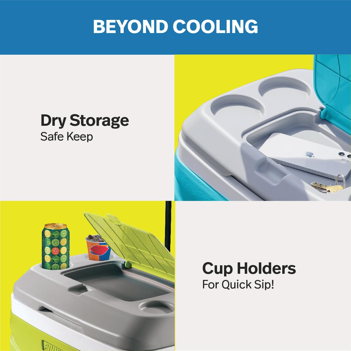 CUP HOLDERS: The Prudence Ice Storage Box includes integrated cup holders to securely hold your drinks while on the go or during outdoor activities.