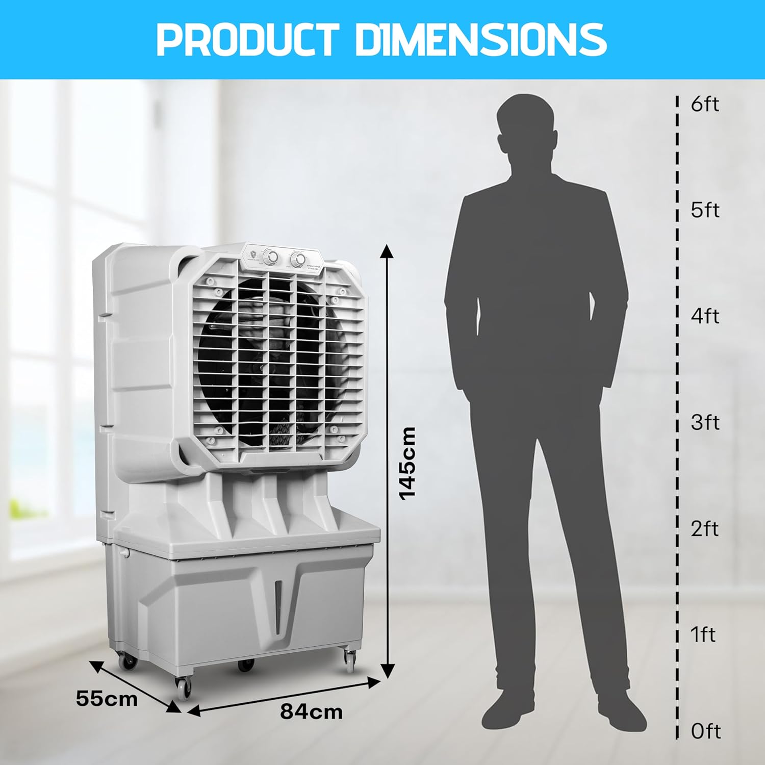 Massive Cooling Capacity: Beat the heat with the 150-liter tank capacity, designed for large spaces like halls, offices, or outdoor areas.
