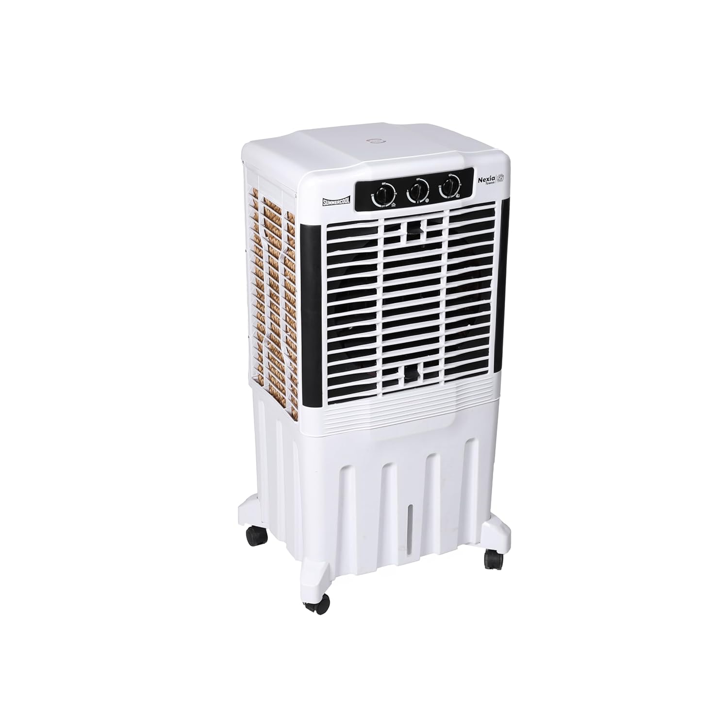 Introducing the Nexia Tower Air Cooler by SUMMERCOOOL, designed to keep your space refreshingly cool. Equipped with a powerful 110 Dia 32 MM motor, it delivers efficient cooling while operating smoothly with its double ball-bearing system. The honeycomb cooling pads ensure superior air circulation, providing consistent coolness. This cooler also works seamlessly on an inverter, making it energy-efficient during power cuts. For easy mobility, it comes with wheels, allowing you to move it effortlessly from room to room. Experience high-performance cooling with Nexia Tower, your perfect companion for those hot summer days.