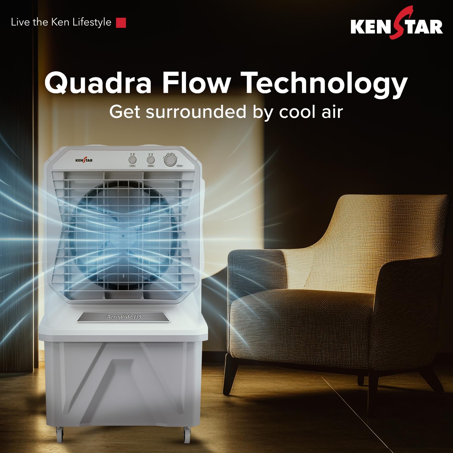 ✅ CATEGORY: AIR COOLER FOR HOME. TYPE: DESERT COOLER. WATER TANK CAPACITY: 135 LITRES. AIR Throw: 80 FEET. AIR FLOW: 8500 CMH (PEAK). COLOUR: LIGHT GREY. FAN SIZE: 19 INCH