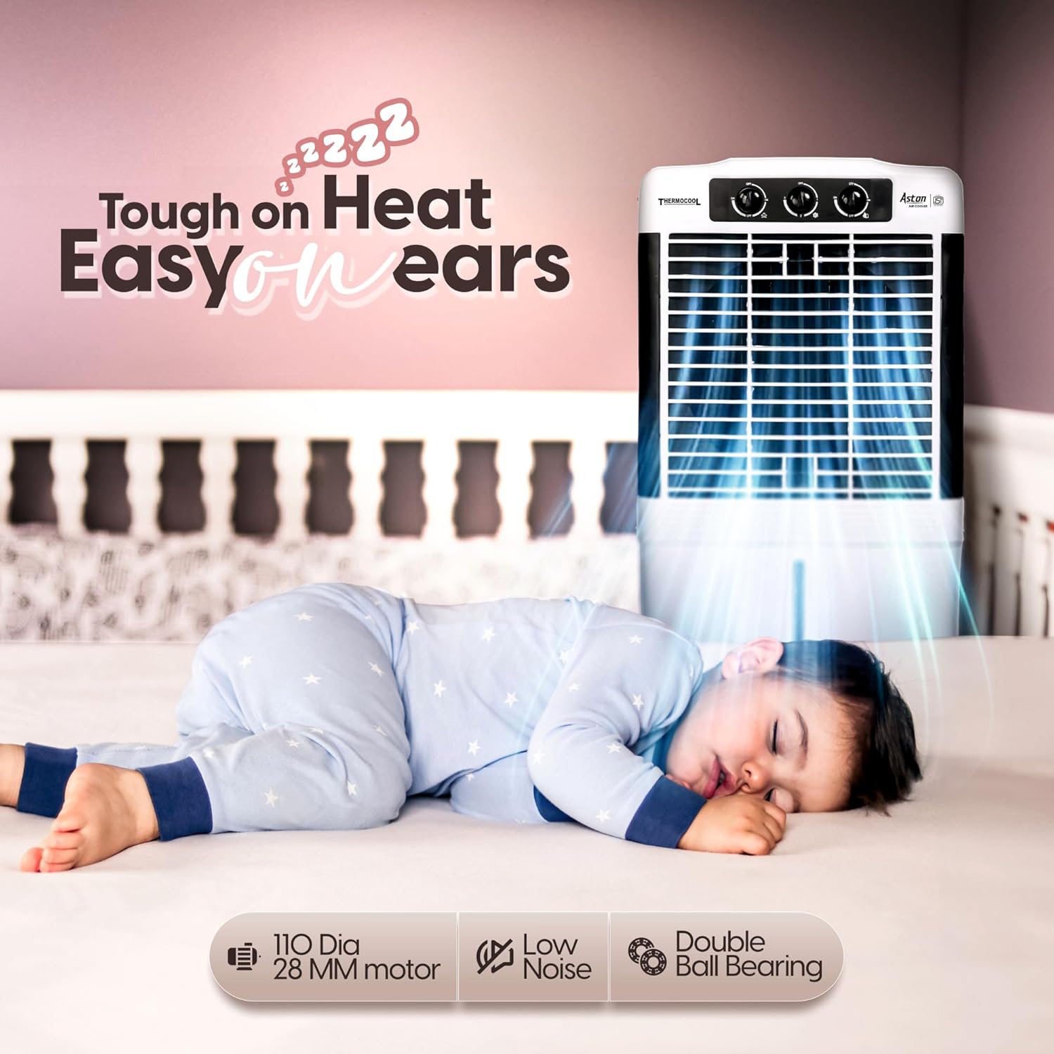Introducing the Aston – Air Cooler from THERMOCOOL, a perfect blend of efficiency and performance. Equipped with a powerful 110 Dia 28 MM motor, this cooler ensures robust airflow, keeping your space cool and comfortable. The Honeycomb Cooling Pads offer enhanced cooling, ensuring freshness even in peak summer. Worried about power cuts? The inverter compatibility ensures uninterrupted cooling. Additionally, the Double Ball Bearing mechanism ensures smooth operation and long-lasting durability. Whether for your home or office, the Aston delivers reliable performance, making it the ideal choice for beating the heat. Stay cool with THERMOCOOL!