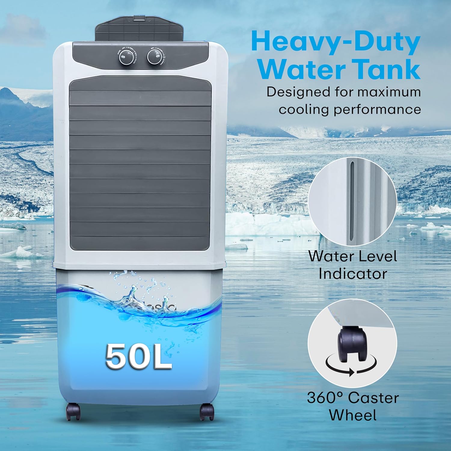 Mounted On Caster Wheel with Brakes: Easily move the cooler from one room to another for versatile cooling options, and secure it in place with the built-in brakes for stability.