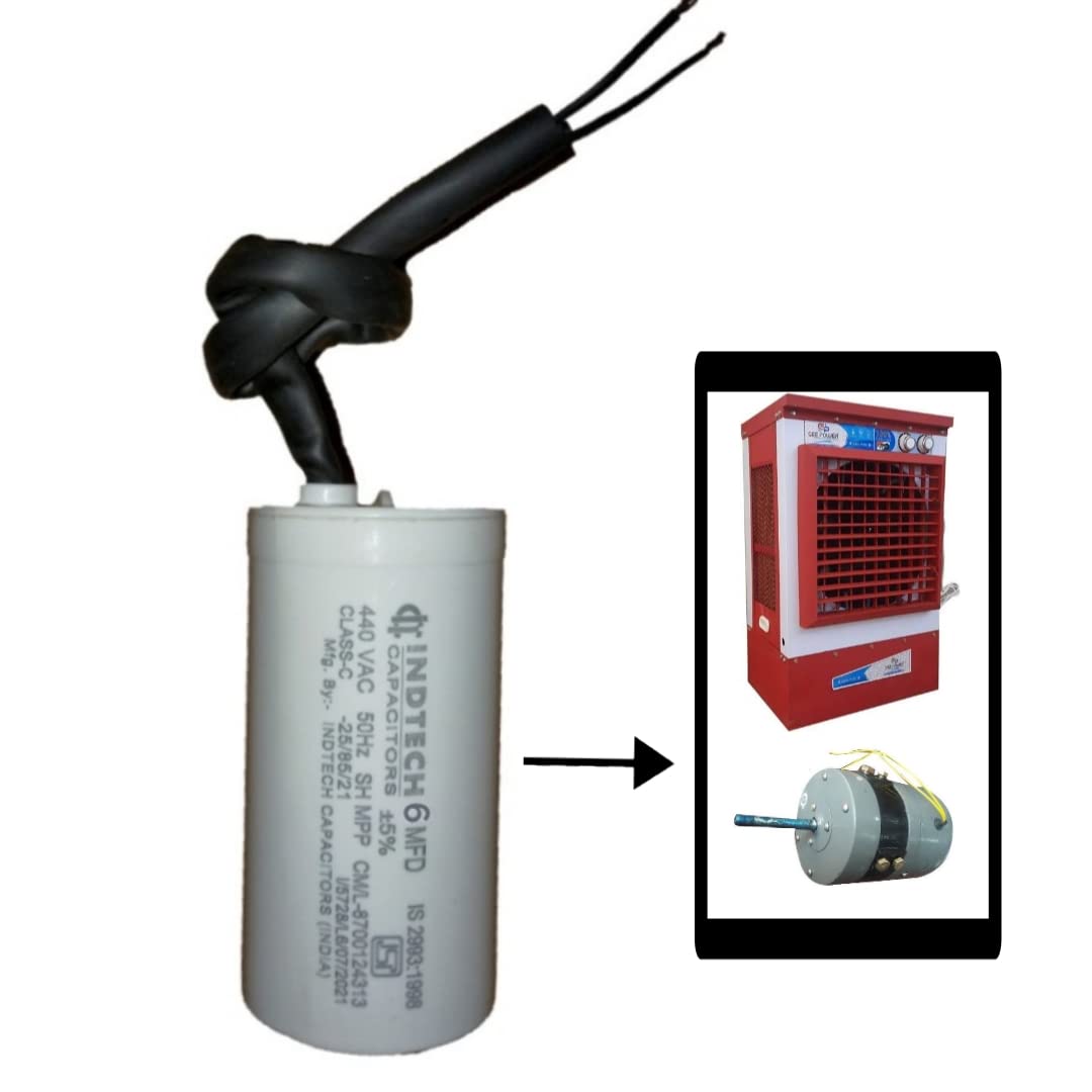 This 6 mfd capacitor is used to run the motor and maintain the rpm of motor. Note: only suitable for coolers with Exhaust motors and 18 inch exhaust motors. Match mfd of your old capacitor before buying.