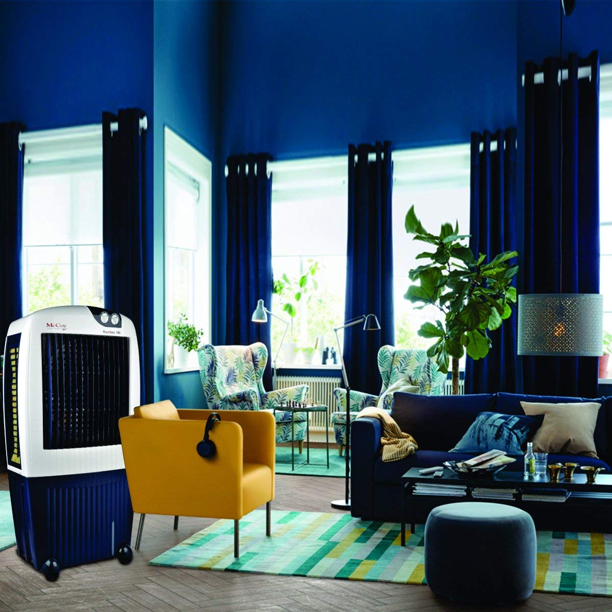 Desert cooler of fan size of 16 inches. Always allow for cross-ventilation in your area/room else cooler will not work effectively. This cooler has a tank capacity of 70 litres. Air throw distance of 40ft. Speed things: 3 speeds.