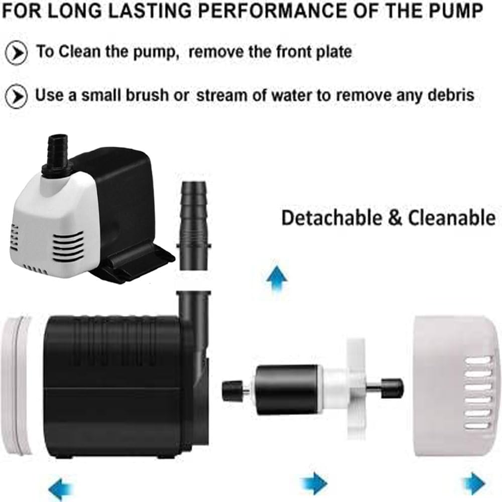 Strong power and high lift are provided by the 9W High-Quality Motor, which provides a genuine flow rate of 1100 LPH (at ground level) and a water lift of 1.55M (5 Feet). After attaching the water pipe to the nozzle (ensure the connection is sealed securely and snugly), the lift height is the maximum height the water may reach. NOTE – Please check the water lifting height before making a purchase. MULTIPLE USES AND SAFETY – Safe for fish, with no exposed copper and no oil. This dependable, ultra-quiet submersible pump is great for hydroponic pump systems, aquariums, and miniature fountains. The cleaning process is made even simpler by no-tool detachable pumps because they may be detached and reassembled without the use of any tools. Regular cleaning also lengthens the life of the product. AFFORDABLE AND USEFUL COOLER AND FOUNTAIN PUMP WITH LOW power CONSUMPTION – This 165-240AC/50 Hz cooler and fountain pump uses just 9 watts of power, which is sufficient for any homes wishing to reduce their electricity costs. Intended for use in air coolers up to a height of six feet, fountains six feet in height, aquariums for water circulation, waterfalls, aquaponics, and other decorative applications, as well as irrigation systems. Perfect for use indoors or outdoors, or any wherever that would be necessary