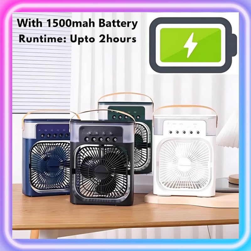β¦πππππ¦ππ‘ ππππππ«π² ππ¨π« ππ¨π§π -π₯ππ¬ππ’π§π ππ¨π°ππ«β¦ Equipped with a powerful 1500mAh rechargeable battery, this battery-powered air cooler offers up to 4 hours of continuous use. Great for outdoor cooling, travel, camping, or emergency cooling, this portable fan provides cordless air conditioning and eco-friendly cooling for various activities.