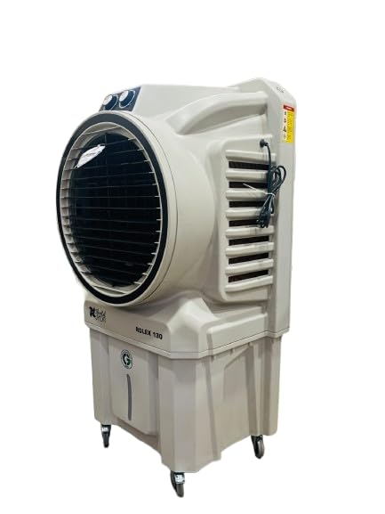 The Sheetal JYOTI ROLEX 130 Desert Air Cooler is a high-capacity cooling solution designed for large indoor and outdoor spaces. With its 130 L water tank and efficient honeycomb cooling pads, it delivers long-lasting, refreshing airflow, keeping your home, room, or patio comfortably cool. The cooler features a slim, modern light-grey design that fits easily into any space, while strong air throw and adjustable louvers ensure effective air distribution. Inverter-friendly operation allows uninterrupted cooling even during power outages, and smooth caster wheels make it easy to move from room to room. Ideal for homes, offices, and outdoor areas, the ROLEX 130 combines performance, convenience, and energy efficiency in one sleek package.