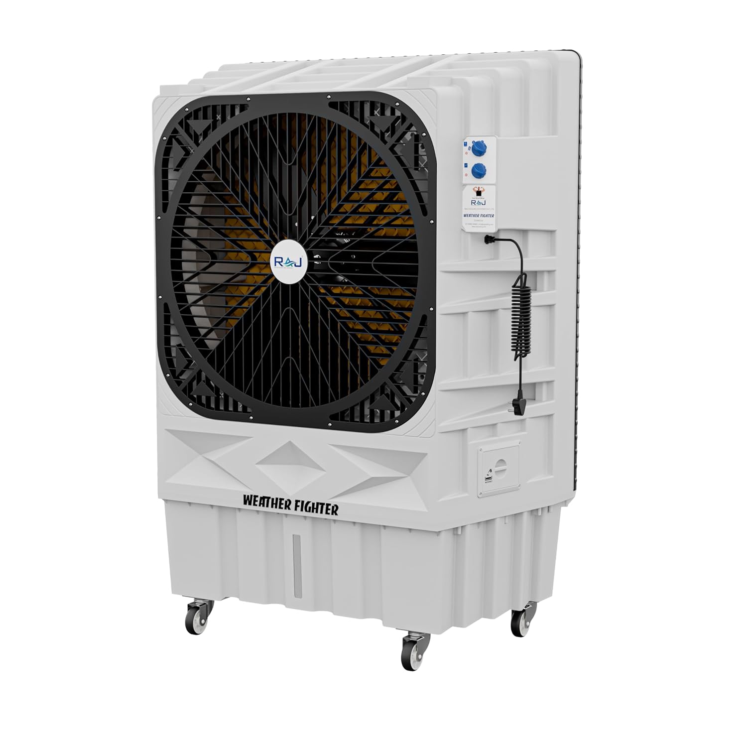 Cool Anywhere, Anytime Unlike conventional air conditioning units that stay fixed in one spot, the Weather Fighter offers versatile cooling wherever you need it. Its lightweight design and easy-grip handle allow effortless mobility between rooms or for outdoor activities like camping, picnics, or workspace setups. Just fill its ample 150-liter water tank, plug it in, and enjoy cool, refreshing air wherever you are. Breathe Easy, Naturally In contrast to standard AC systems that can dry out the air and irritate sinuses, the Weather Fighter uses natural evaporative cooling technology. By pulling hot air through a moistened cooling pad, it effectively lowers temperatures and adds moisture to the air. This gentle cooling approach not only keeps you comfortable but also supports skin and respiratory health, making it particularly suitable for individuals with allergies or sensitivities. Powerful Cooling, Whisper-Quiet Operation Despite its compact size, the Weather Fighter packs a punch with its high-performance axial fan, capable of circulating up to 18,000 cubic meters of air per hour. This ensures efficient cooling for spaces up to 2550 square feet, whether in living rooms, bedrooms, offices, or small shops. Operating quietly at only 62 decibels, it delivers cooling relief without disruptive noise. Eco-Friendly and Cost-Effective Bid farewell to high utility bills and environmental concerns. The Weather Fighter stands as an energy-efficient alternative to traditional AC units, consuming significantly less power. Its reliance on natural cooling processes means no harmful refrigerants or chemicals, aligning with sustainable practices for your budget and the planet.
