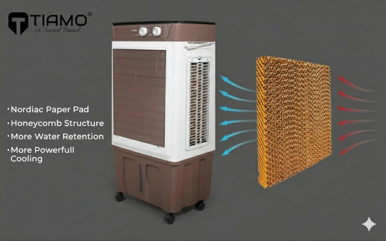 ANTI-BACTERIAL HEXACOOL TECHNOLOGY PADS : Safeguard from bacteria and keeps it hygienic. Provide fresher & cleaner air . HEXACOOL TECHNOLOGY comes with HEXAGONAL DESIGN cooling media delivering maximum cooling with minimum water consumption.