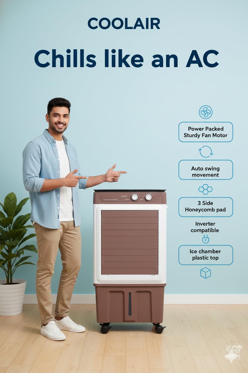ICE CHAMBER : Air cooler comes with the ICE CHAMBER to store ice cubes to increase cooling effect along with 3-sided honeycomb pads for maximum cooling.