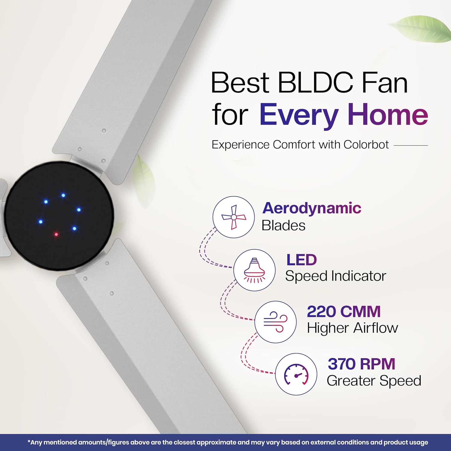 100% COPPER WINDING: Colorbot BLDC Ceiling fans with 100% copper winding and sealed double ball bearing for noiseless, maintenance-free operation.