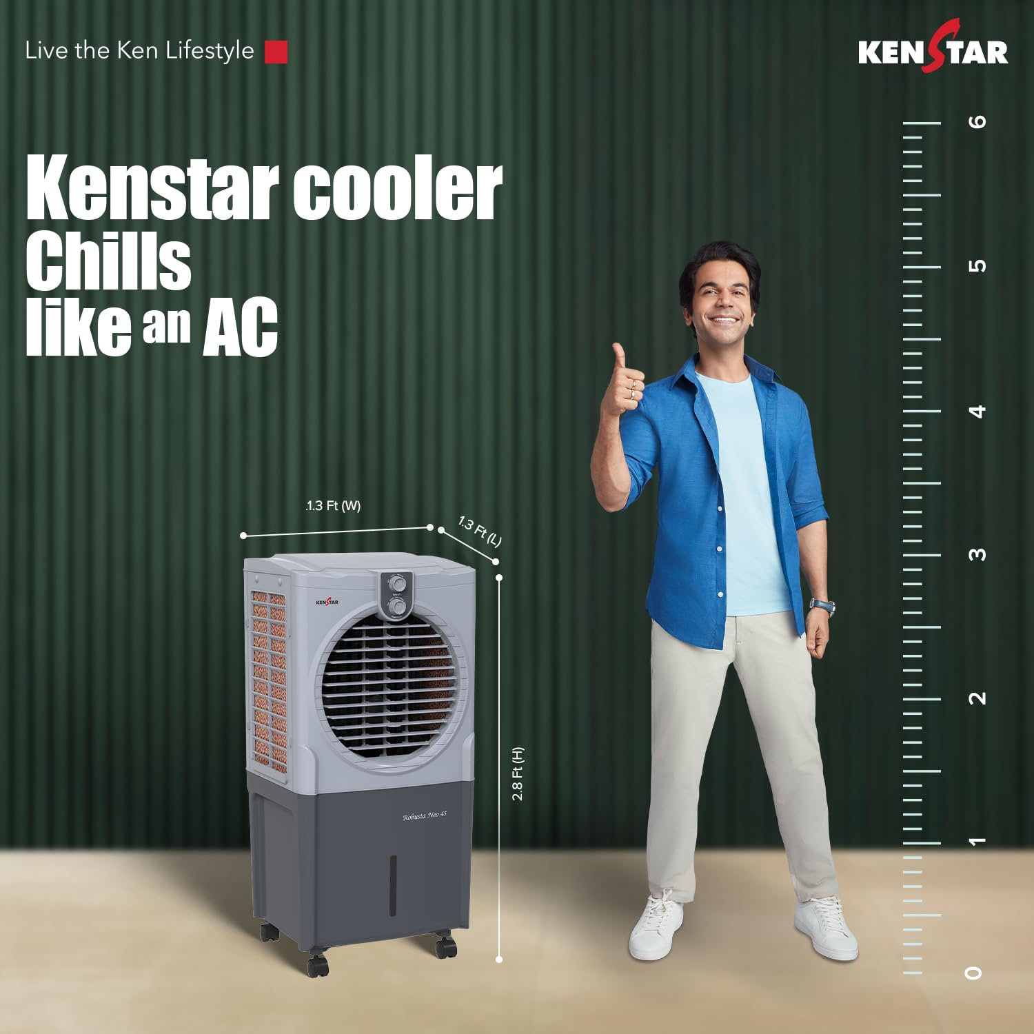 ✅ POWERFUL PERSONAL AIR COOLER WITH LONG AIR THROW- Kenstar Robusta Neo HC 45 comes with a 12-inch high-speed fan (2500 RPM) delivering 35-inch air throw, perfect for personal cooling in bedrooms and study rooms.