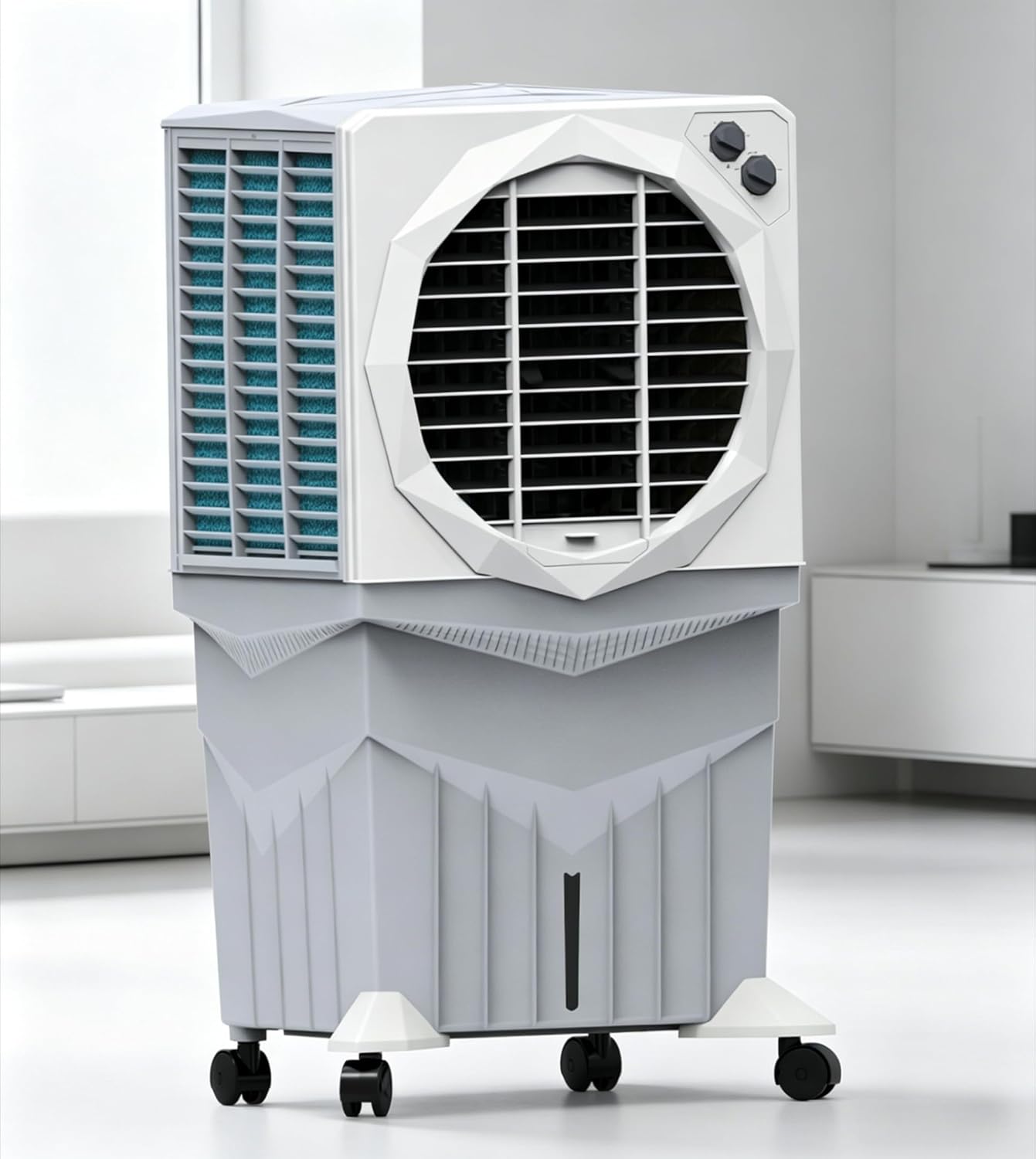 Designed for the Indian household, it is fully inverter compatible, ensuring uninterrupted comfort even during frequent power cuts. The massive 75-liter tank capacity eliminates the need for frequent refilling, making it perfect for overnight use. With its sleek white finish and durable build, this model combines aesthetics with industrial-grade cooling efficiency.