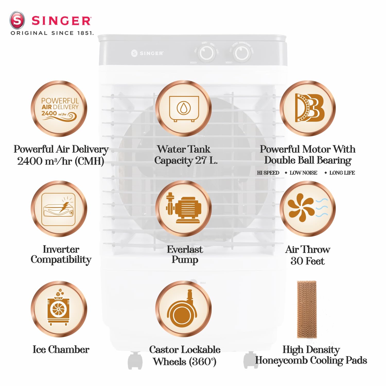 ✅ 【Specification】: 37 Litres large water tank capacity for extended cooling, 30 Feet Powerful Air Throw for wider air circulation, High Speed Fan for rapid airflow, Elegant White finish suitable for modern interiors.