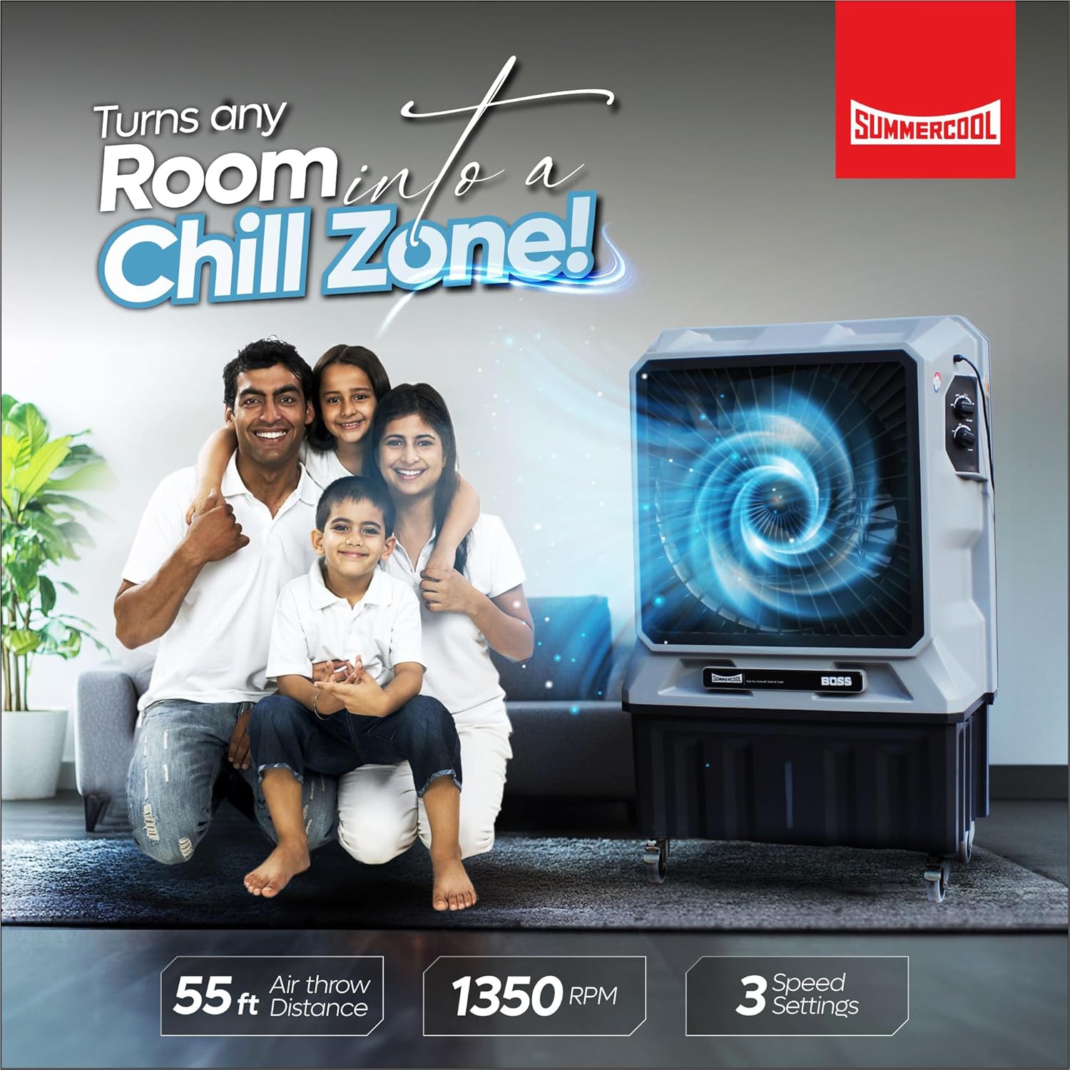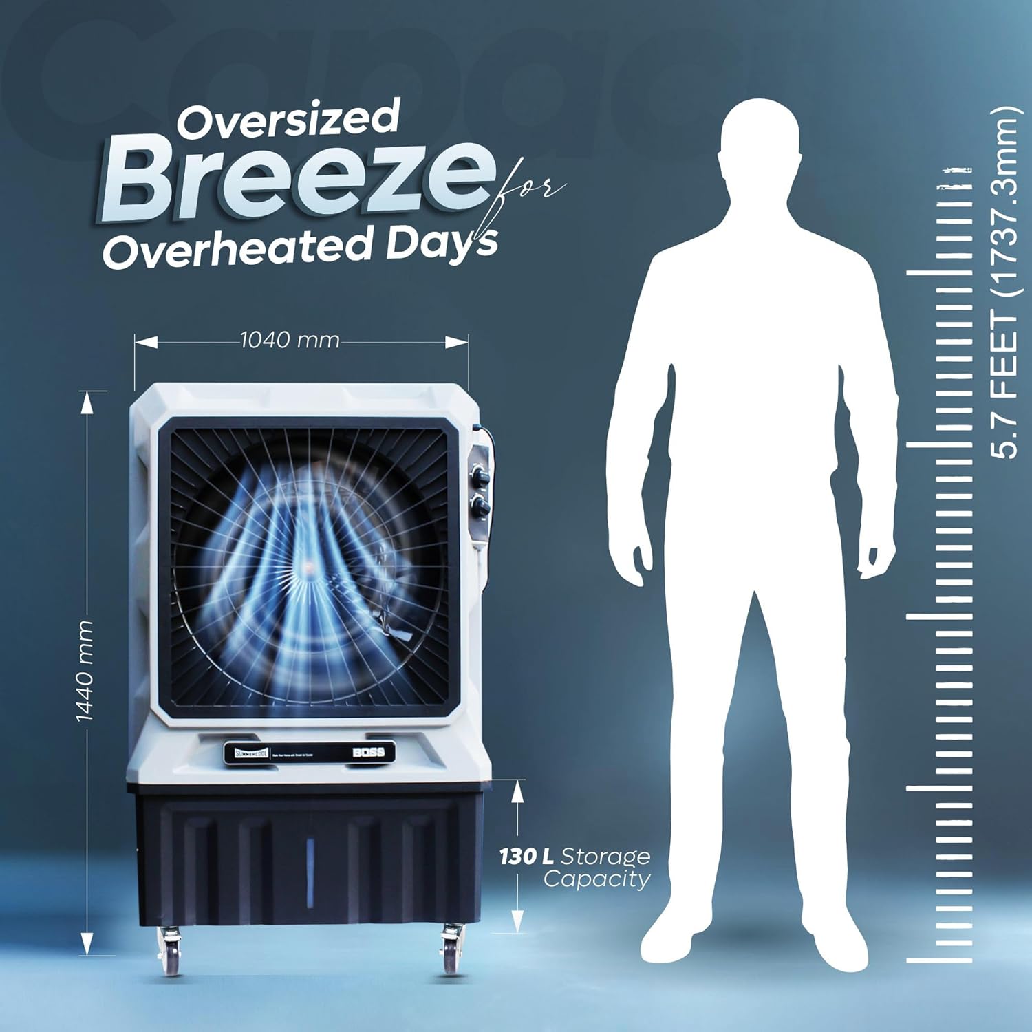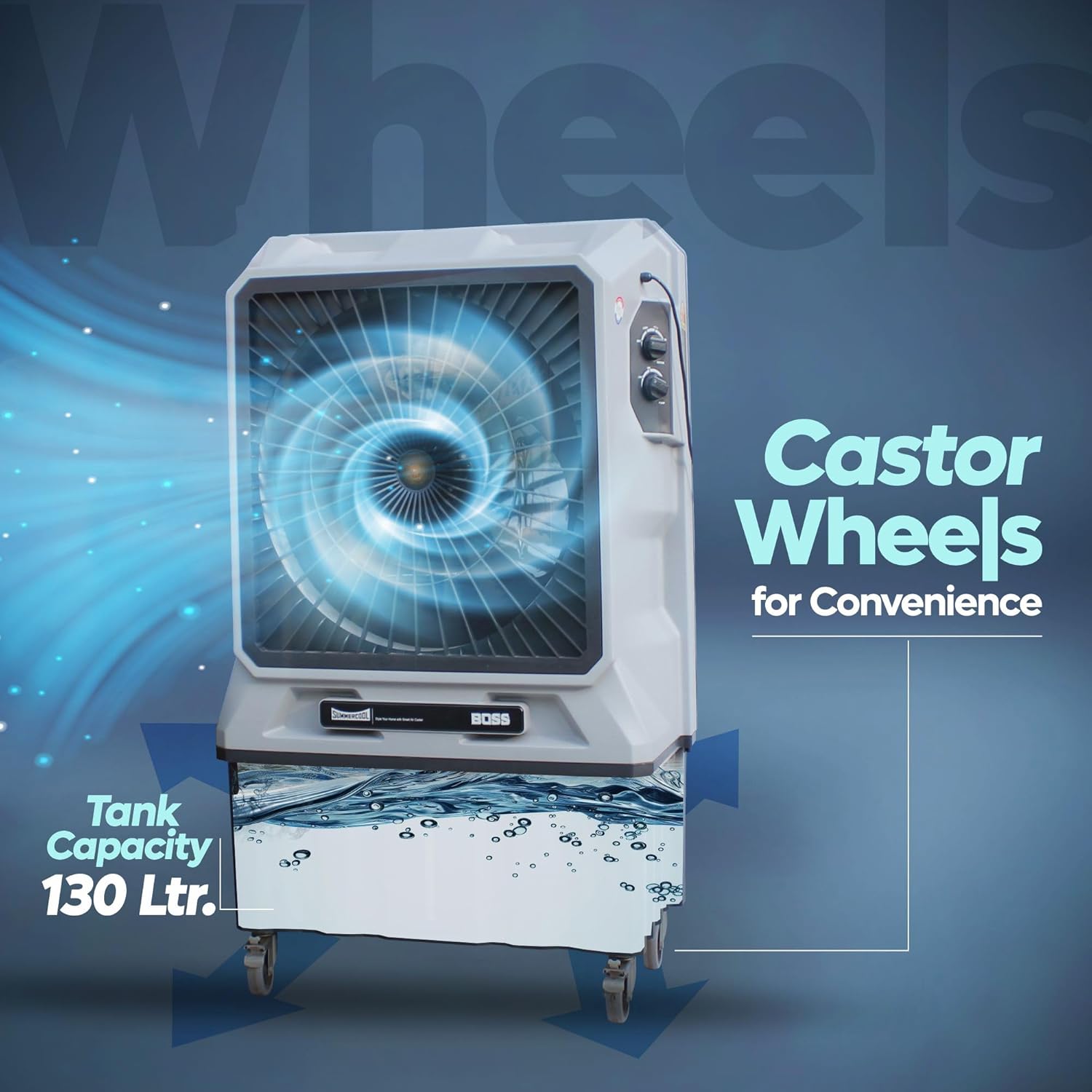 “Experience unbeatable cooling with the Boss 130Ltr Commercial Air Cooler from SUMMERCOOOL. Designed with an H-frame shell motor for enhanced durability and performance, this cooler features auto-swing functionality to ensure even air distribution throughout your space. The high-efficiency honeycomb cooling pads and double ball bearings offer superior cooling and quiet operation, while the convenient wheels make it easy to move from room to room. Additionally, the canceled pump ensures optimal water flow and cooling efficiency. Stay cool and comfortable with the Big B Excel β your perfect summer companion!