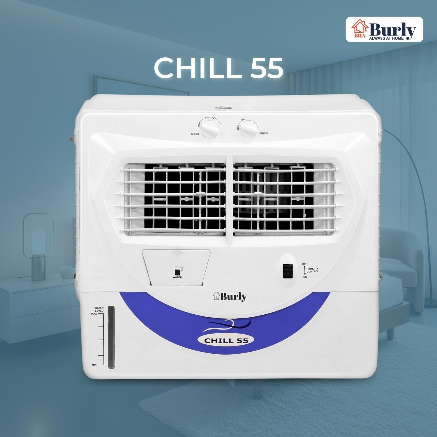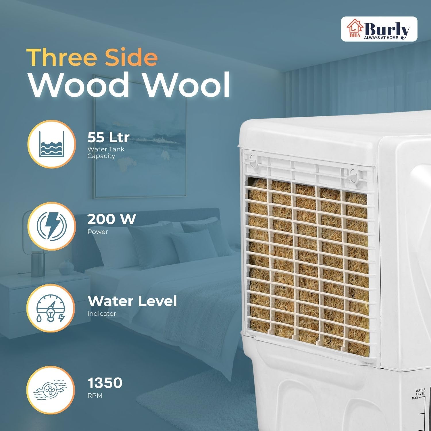 Stay cool and comfortable this summer with the BHABurly Chill 55L Window Air Cooler, crafted for powerful and efficient home cooling. Designed to deliver a strong 60-foot air throw, it ensures wide air circulation across bedrooms, living rooms, and other indoor spaces. The high-speed 1350 RPM motor provides robust and consistent airflow while consuming only 200W of power, making it an energy-efficient choice for daily use. 3200 CMH Built for Indian conditions, this window cooler is inverter compatible, ensuring uninterrupted cooling even during power cuts. The large 55-litre water tank supports extended cooling without frequent refilling, while the dual-side water inlet adds extra convenience. For enhanced performance during peak summer heat, the integrated ice chamber delivers an instant boost of cool air. Durable, reliable, and easy to maintain, the BHABurly Chill 55L Window Air Cooler is backed by a 1-year warranty for complete peace of mind. Combining strong performance, energy efficiency, and user-friendly features, itβs a smart and dependable cooling solution for your home.