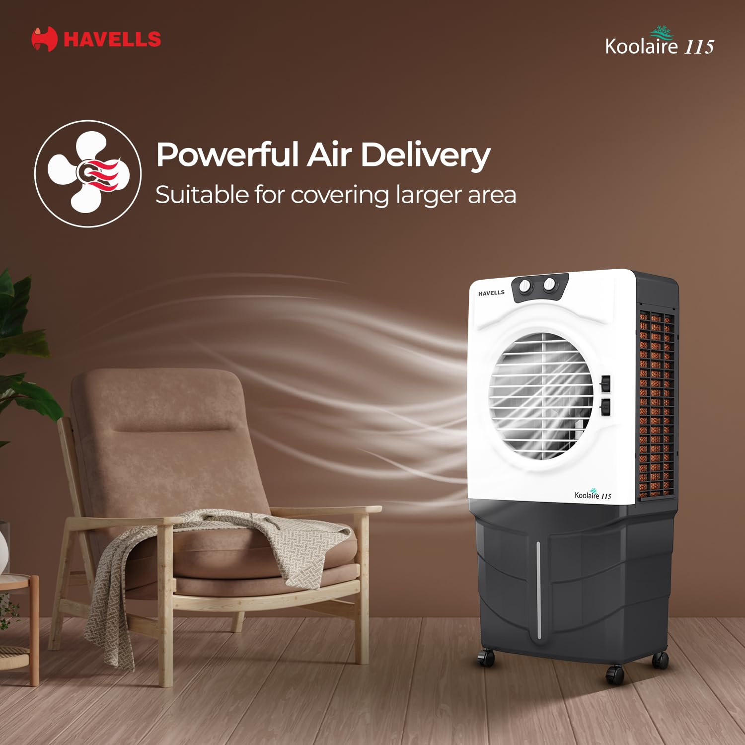 Type & Capacity: Desert air cooler with 115 L capacity, ideal for commercial and home use, providing efficient cooling and comfort in hot weather.