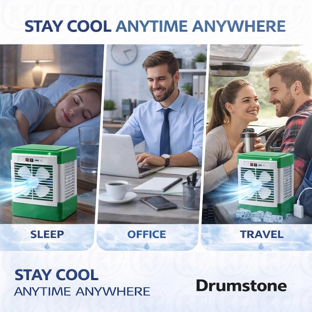 🔹 🎯 COMPACT DESK COOLER – PERFECT FOR EVERY SPACE Smart and portable design fits easily on table, bedside, kitchen, office desk or shop counter. Lightweight and easy to carry anywhere. Best for students, office workers, shop owners and travel use.