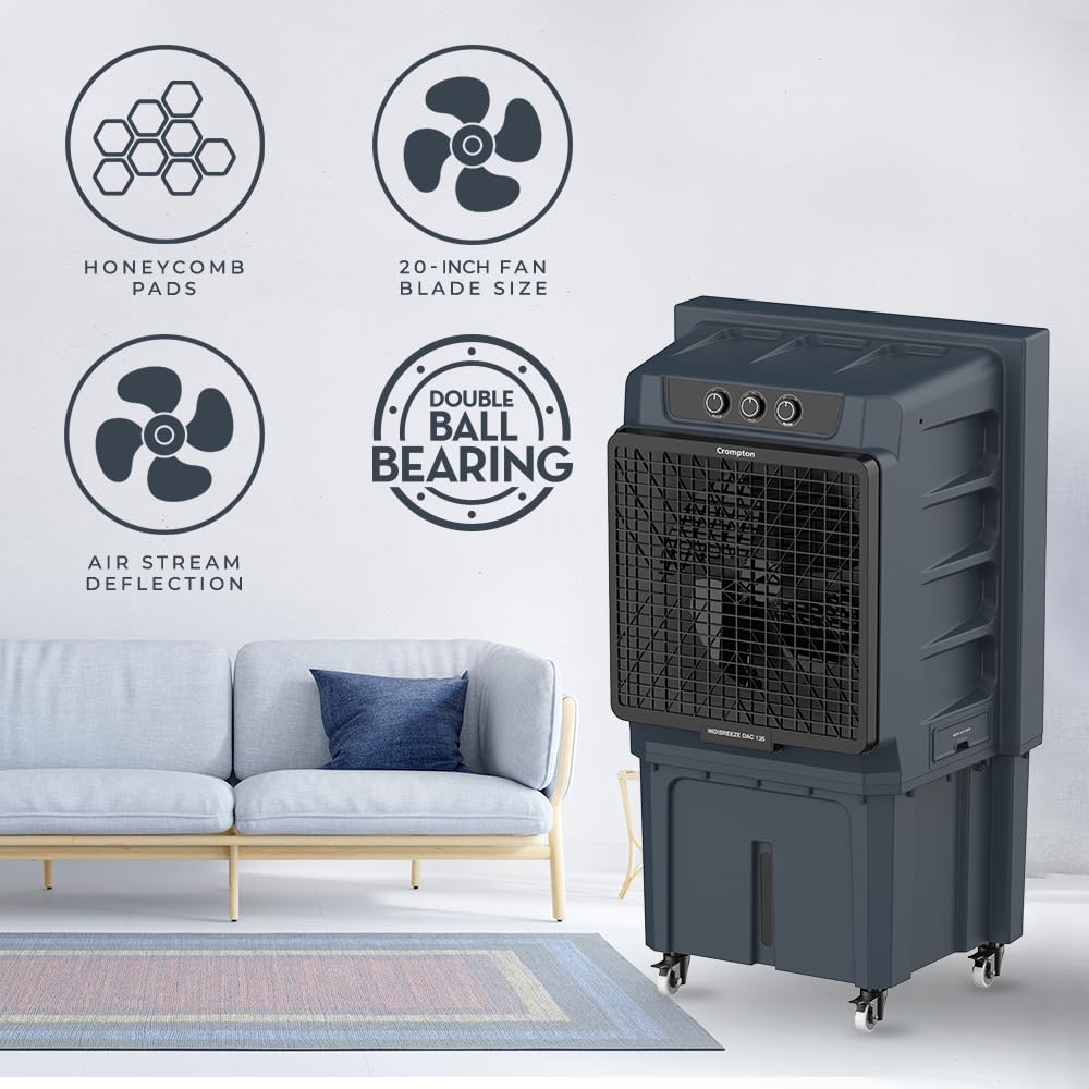 135L Tank Capacity & Auto Fill – Air cooler is provided with 135L tank capacity and is provided with Auto fill for connecting continuous water supply.