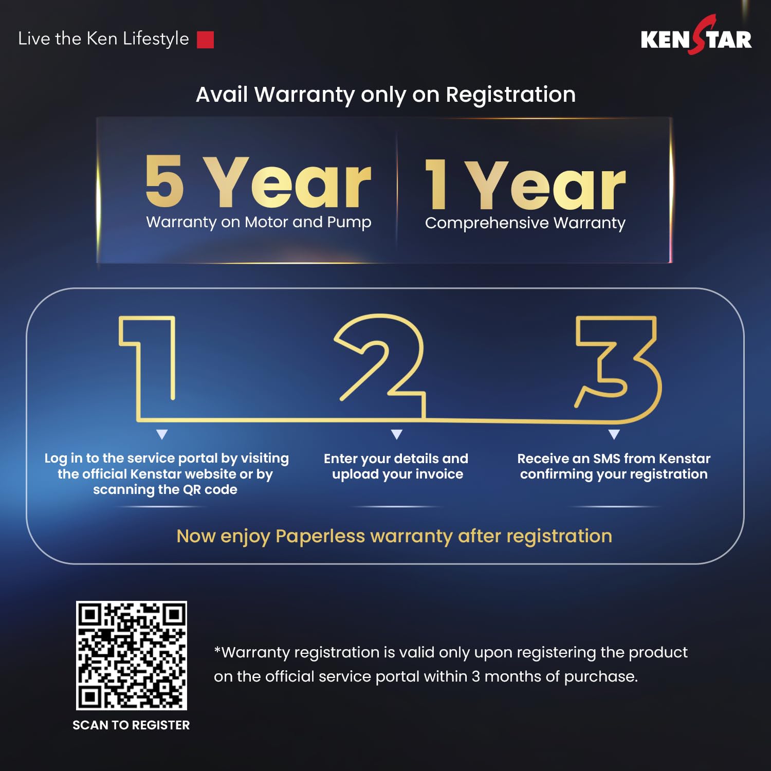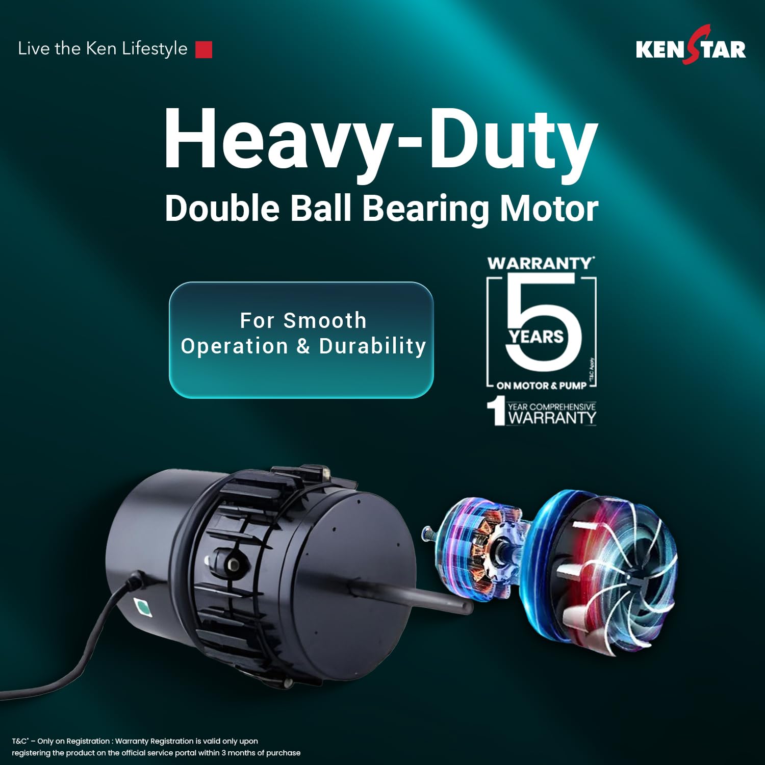 Sturdy design with 19-inch plastic fan, 4-pole induction motor (1350 RPM), and 1-year warranty for reliable performance 5 Years Warranty on Motor and Pump
