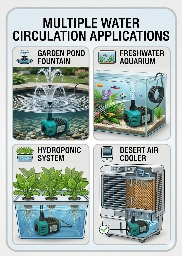๐ Multi-Application Utility โ Suitable for desert air coolers, aquariums, fountains, and small water setups.
