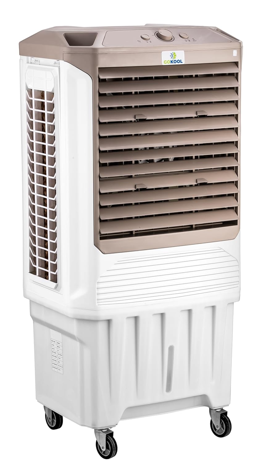 The Gokool WINGS 100 L Room/Personal Air Cooler is designed to deliver powerful and consistent cooling for large living spaces and commercial environments. Its large 100-liter water tank ensures longer cooling hours with fewer refills, while the advanced honeycomb cooling pads enhance evaporation efficiency for better cooling performance. Equipped with an energy-efficient motor, strong air delivery system, and easy mobility, the WINGS cooler is a reliable and economical solution for Indian summers.