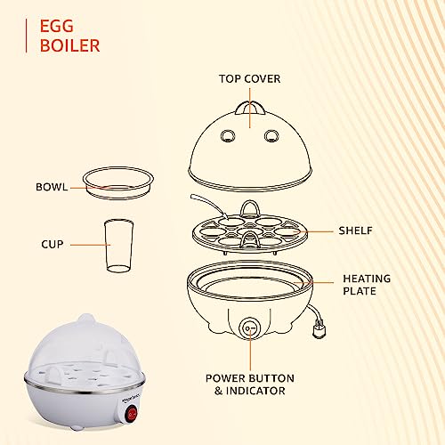 AUTO SHUT-OFF AND LED INDICATOR: This user-friendly egg boiler has a built-in auto shut-off feature that turns it off as soon as the egg is boiled and the led indicator tells when the boil is done.