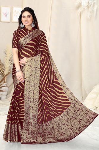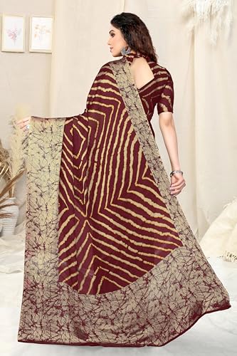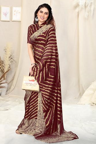 Beautifully designed Indian Traditional ethnic regular wear sarees made of high-quality fabric Chiffon having beautiful leheriya printed design with contrast texture pallu pattern. Mirchi Fashion brings you a nice addition to the wardrobe of every fashionable female, who wants to look glamorous and distinct.This sari comes with matching Chiffon printed blouse fabric, which can be stitched according to your comfort Up to 32 to 42 Inches.