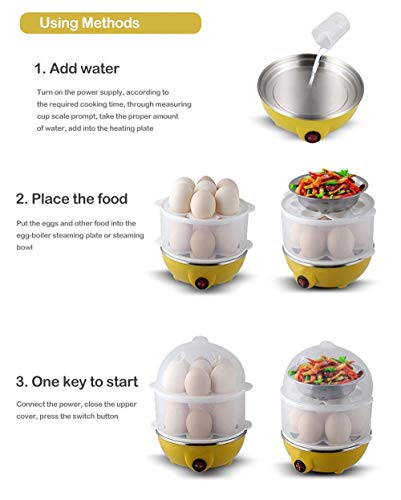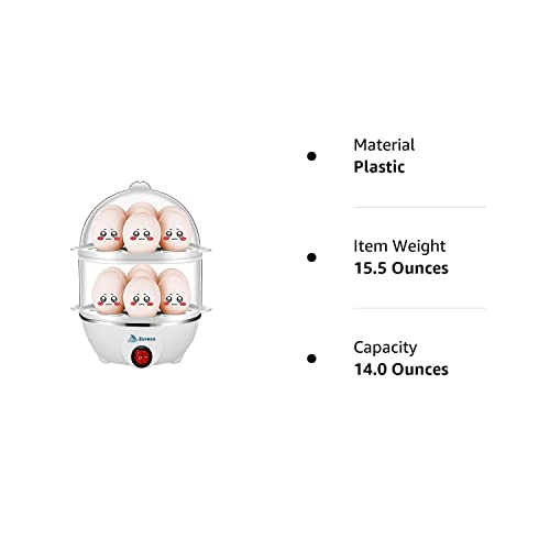 Easily boil, poach, or steam up to 14 eggs in minutes, faster than stovetop method. Use the included measuring cup to know how much water you need depending on the style of egg. The ready buzzer will signal once your eggs are finished cooking.
