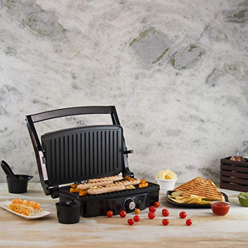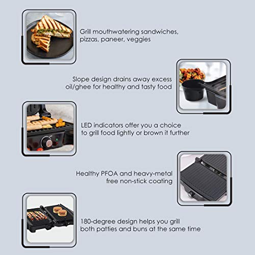 Great for grilled sandwiches, pizzas, paneer, and melting the cheese 180-degree grilling – both sides can be used for grillingCooks food evenly on both sidesSuperfast heatingThermostat controlEnjoy healthy and tasty food!