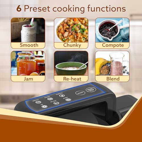 6 Preset Cooking Functions -Smooth,Chunky, Compote, Jam, Reheat, Blend
