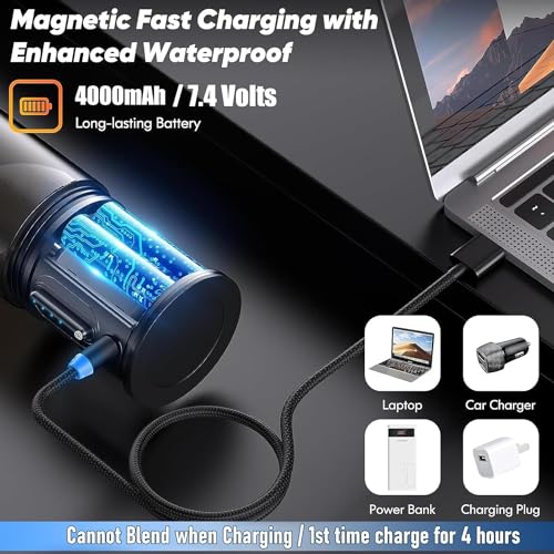 Versatile and LED Lights : Blend fruits, veggies, protein powders, Baby foods and more with the simple one-touch operation-perfect for quick, nutritious refreshments. Press twice to start the blender. The LED light also shows the battery power , where all 4 lights glowing blue means full power. It is advised to charge for 2-3 hours.The charging is ultra modern magnetic charging with USB.