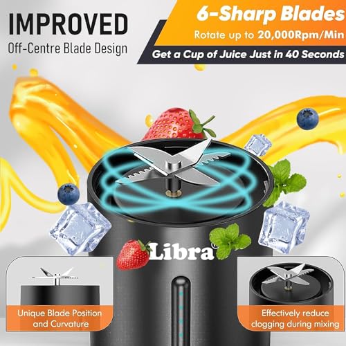 Rechargeable Convenience: Libra blender offers extended blending sessions with 4000 mAh, allowing multiple uses on a single charge. Enjoy up to 20 blends on a full charge, making it perfect for days out, travel, or uninterrupted use at home or work without the need for frequent recharging. The blender shall run for 40 seconds and then shut off automatically. If you need to blend further , run it again.