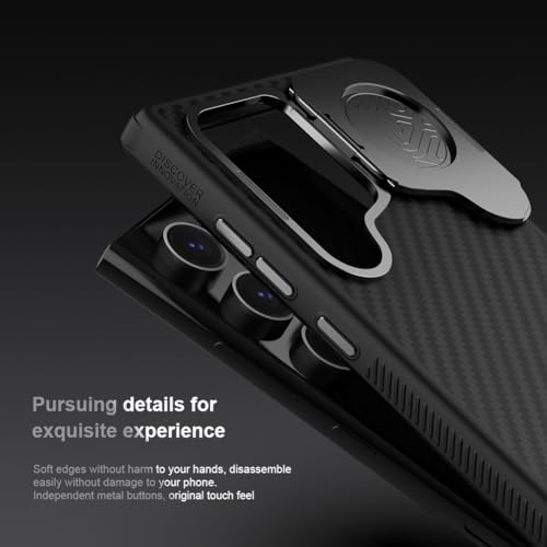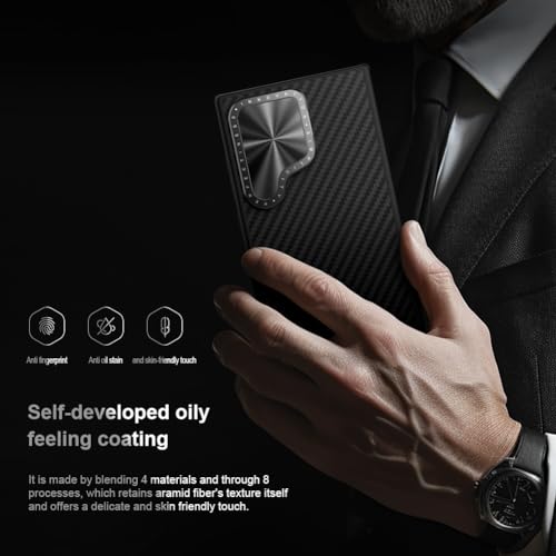 CarboProp case is made of aramid fiber , commonly known as black gold in the material industry. By overmolding injection with aramid fiber and TPU, provides your phone comprehensive protection. The creative metal frame design not only protects the camera, but also serves as a phone holder. Independent metal buttons, precision cut for a tight fit. With built-in strong magnet, you could enjoy MagSafe at will.
