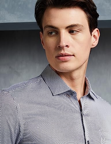 These formal shirts are made out of 100% double ply premium cotton fabric with liquid ammonia and moisture cure treatment that will resist wrinkles, add lustre and make the fabric breathable. The superlative craftsmanship with semi-cutaway collar, French placket, shanked and wrapped buttons, removable collar bones, and high quality interlinings would add on to the finesse of the garment. You may pair it up with a formal trouser and a blazer for a sharp formal look….. or roll up the sleeves and wear it with a chino or a clean Jeans for that smart casual occasion.
