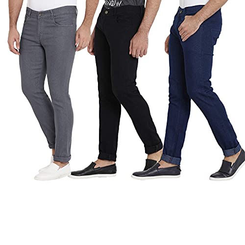 The Cotton fabric material is just perfect to give that soft and smooth touch. It is Mid rise with Zip fly and button closure, Brand label at the back, 2 Patch Pockets at Back, 1 Coin Pocket at Front, 2 Curved Pockets at Front. Classic “DAIS” Signature Leather Label at the Back. Tested colour fastening and our Jeans don’t easily fade out or bleed colours. Give your closet a complete makeover and replace your old denims with a handsome new pair of jeans, that too 3. We provide every possible combo in shades: Black, Olive, Dark Blue, Khaki, Camel, Light blue and Grey. This is a Combo pack of 3.
