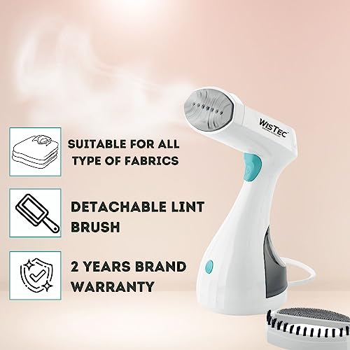 7-Hole Nozzle Design with Ceramic Coated Plate & 300 ML Water Tank: The wistec steamer for clothes has 7-hole nozzle design which distributes steam evenly across the garments. This garment steamer comes with detachable brush attachment which can be used to remove lint or can be use for steaming delicate fabrics.The large tank of clothes steamer allows continuous steam up to 20 mins,so you can use the steam iron for ample amount of time without refiling & the larger hole makes refilling easier.