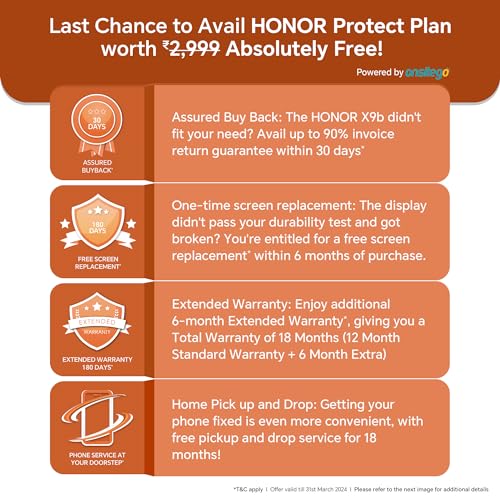 5800mAh Upto 3-Day Battery – The HONOR X9b boasts a high-energy-density 5800mAh DXOMARK Gold Li-Po battery, showcasing its durability with over 80% battery health retention after 3 years and 1000 charging cycles.